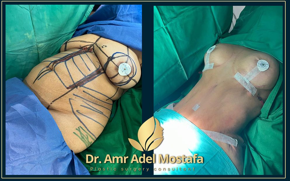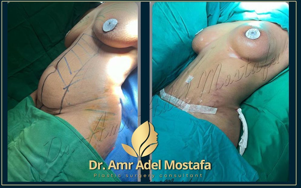 شفط الطن والاجناب والظهر مع شد ترهلات البطن والاجناب- سليكون للثدي